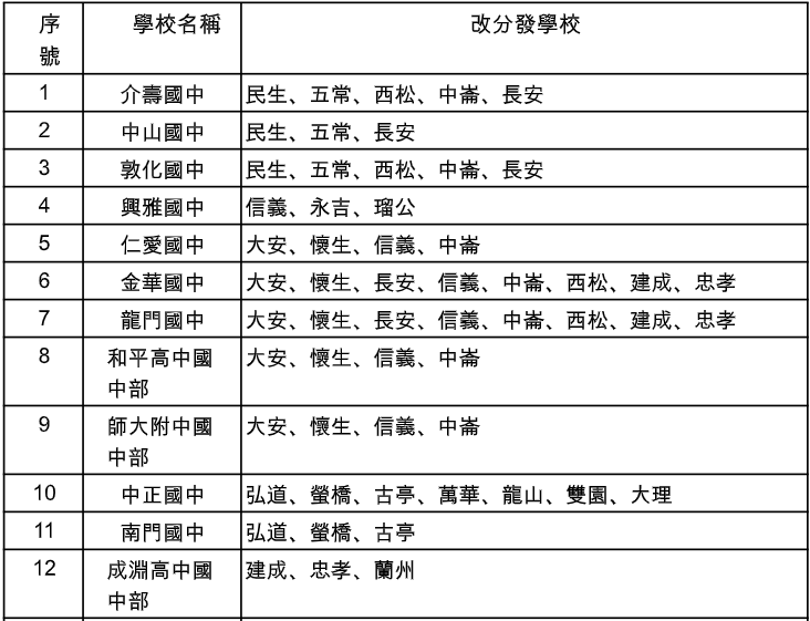 臺北市115學年入學國一額滿國中暨改分發學校