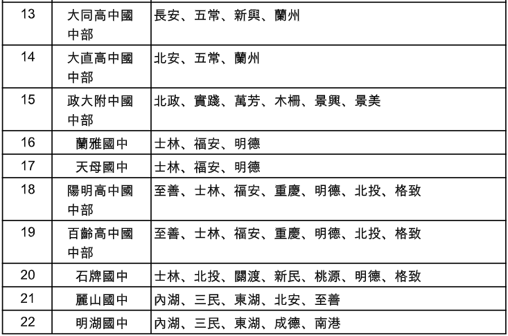 【情報】臺北市115學年入學國一額滿國中暨改分發學校